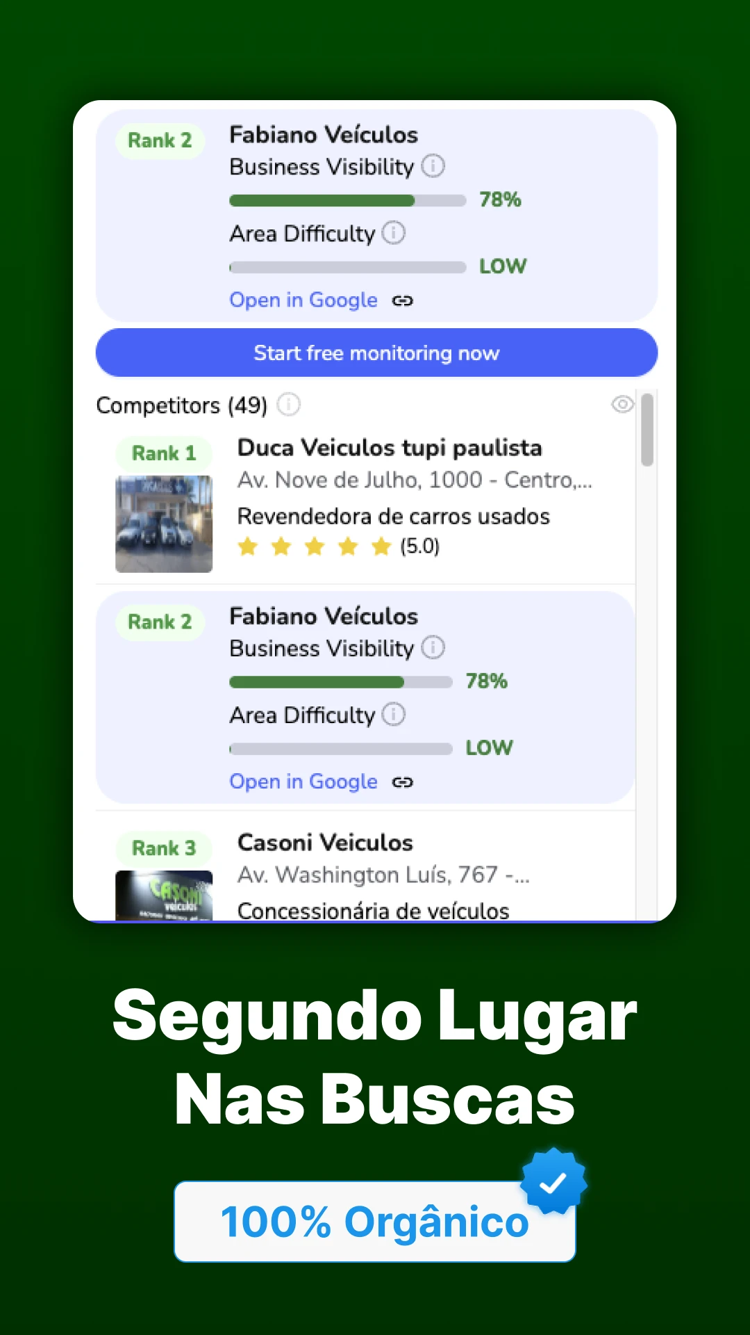 Diferente de grandes agências, ofereço um atendimento direto e transparente. Acredito que a melhor parceria é aquela baseada na confiança e em um objetivo em comum: ver a sua empresa crescer. Meu compromisso não é apenas com algoritmos, mas com o resultado real no seu faturamento.